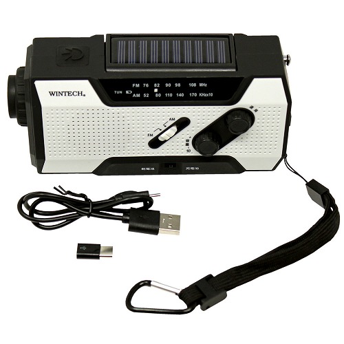 *手回し充電+ソーラー充電、MicroUSB充電機能(リチウム充電池2000mAh内蔵)