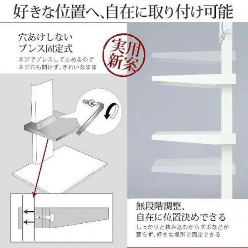 パネル部分に取り付けることができる棚は、ビスなどを使わずに固定できる優れものです。
