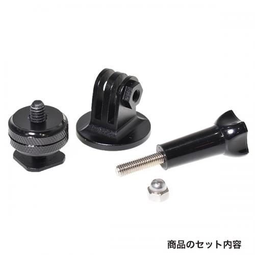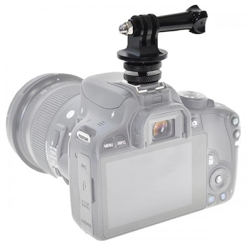 一眼レフカメラなどのアクセサリーシュー(フラッシュ取り付け部)に、GoProカメラやスマートフォン、ビデオライトなどのGoPro用マウント対応機器を装着できるようにするアダプターです。