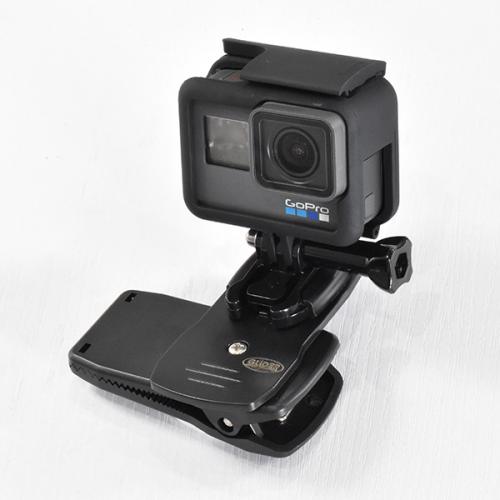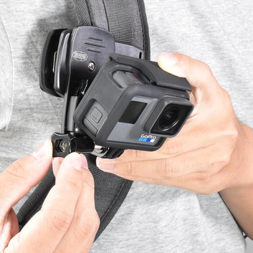 リュックやバッグのショルダーにはさんで撮影できる便利なマウントです。360度回転するのでタテ撮影も可能です。