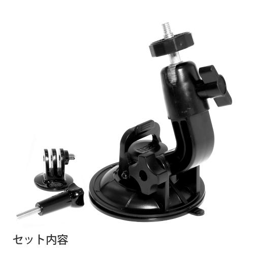 大型の吸盤(直径9cm)と太めのアームで大きめのカメラも強力に固定できる、レバー式の吸盤マウントです。直径9cm以上の、できるだけ平面のある場所に取付できます。まず必ず強く押しながら吸盤を装着し、レバーを下すとしっかり固定されます。はずす時はレバーを上げてから取外してください。