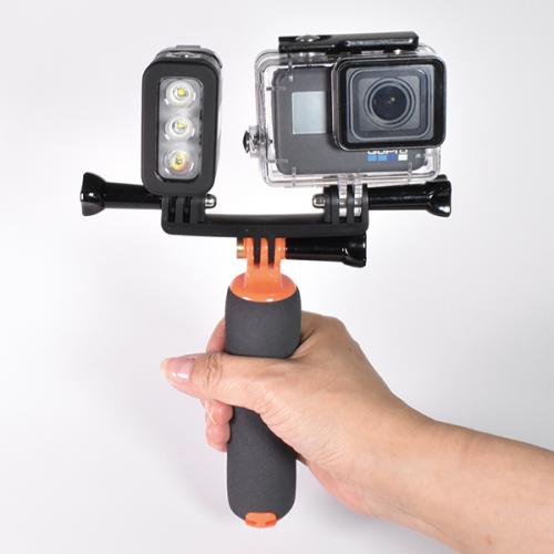 自撮り棒、アームバンド、自転車やバイクのホルダー等に取り付けでき、あらゆる標準的なカメラの附属品に対応できます。