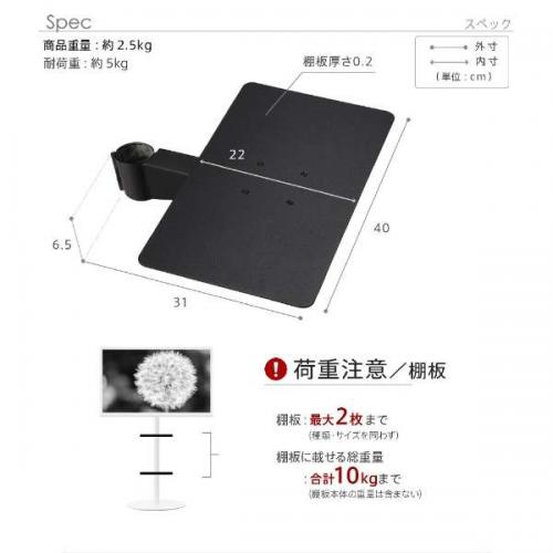 棚板の耐荷重は5kg。棚板はTVスタンドに2枚まで取付できます。