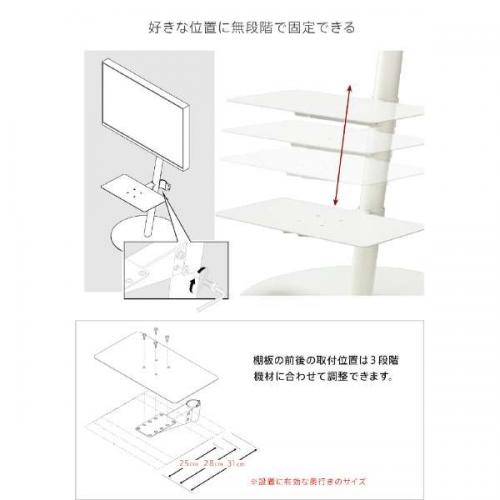 棚板の耐荷重は5kg。棚板はTVスタンドに2枚まで取付できます。
