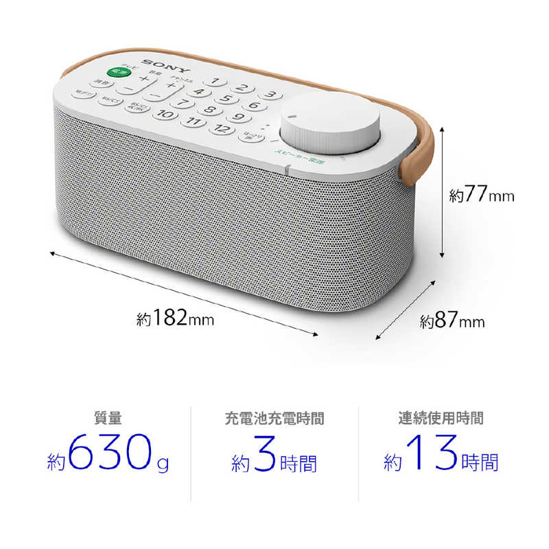 使い勝手のよい大型つまみ式ボリューム、最大約13時間(*)使用できるスタミナバッテリー、キッチンなどでの使用に便利な防滴機能など、ソニーならではの使いやすさにもこだわっています。