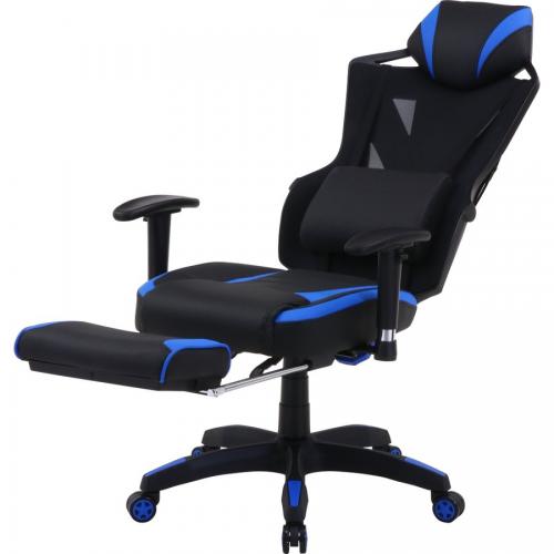 不二貿易 メッシュゲーミングチェア レイズブルー フットレスト付 回転式 リクライニング 19430