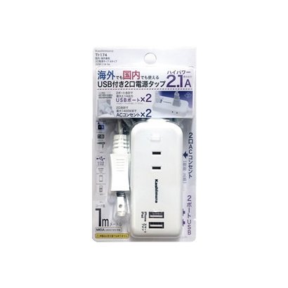 カシムラ 国内・海外兼用 2口電源タップ Aタイプ 2USB 2.1A 1m TI-174