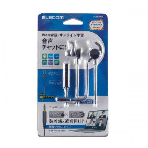 エレコム ELECOM ヘッドセット 両耳 有線 イヤホン マイクアーム 付 イヤホンジャック 3極 4極 接続 テレワーク WEB会議 オンライン授業 ブラック HS-EP15TBK