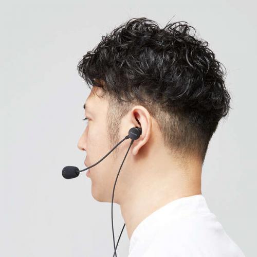 ■遮音性が高く耳にフィットする耳栓タイプで、音漏れを低減すると同時に周囲の雑音に影響されずに通話可能です。