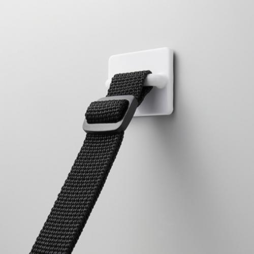 ■ベルト長さを調整して、一方を機器背面に取り付け、反対側を設置場所や壁面に貼り付けることで、前方への転倒を防止します。