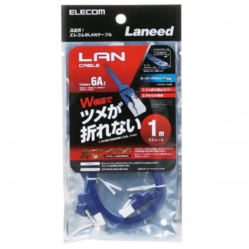エレコム ELECOM LANケーブル CAT6A準拠 爪折れ防止 フラット 1m メタリックブルー LD-GFAT/BM10