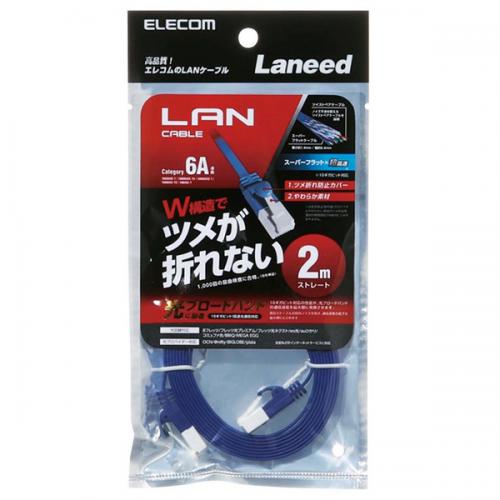 エレコム ELECOM LANケーブル CAT6A準拠 爪折れ防止 フラット 2m メタリックブルー LD-GFAT/BM20