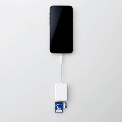エレコム ELECOM Lightningカードリーダー メモリーカードリーダー Lightningコネクタ SD+マイクロSD Type-C変換アダプタ付 iPhone ケーブル7cm ホワイト MR-LC201WH