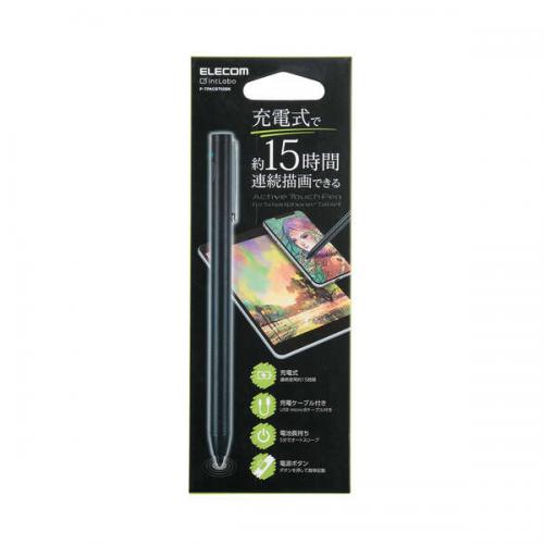 エレコム ELECOM アクティブスタイラスペン タッチペン 極細 1.5mm 充電式 ブラック オートスリープ機能 クリップ付 スマホ タブレット 滑らかな操作 P-TPACST02BK