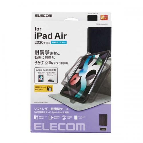 エレコム ELECOM iPad Air 10.9インチ 第4世代 (2020年モデル) ケース カバー 手帳型 フラップ ソフトレザー ApplePencil収納 スリープ対応 マグネット 360度回転 ブラック TB-A20MSA360BK