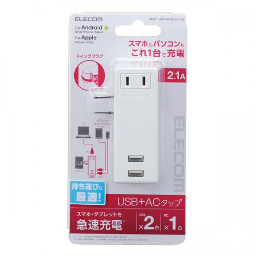 エレコム ELECOM USBタップ USBメス×2 AC×1 横挿し ケーブル無 2.1A ホワイト MOT-U04-2122WH