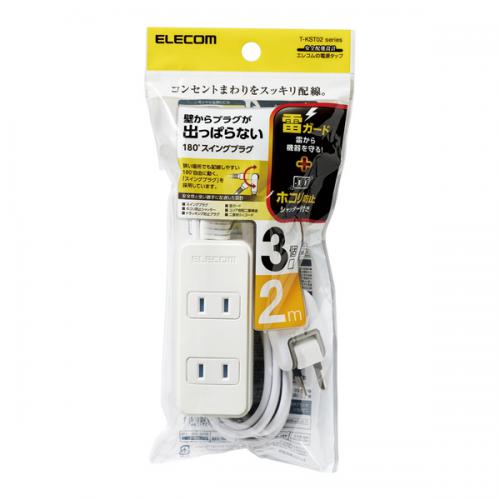 エレコム ELECOM シャッタータップ 雷ガード 3個口 2m ホワイト T-KST02-22320WH