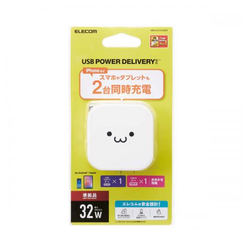 エレコム ELECOM USB 充電器 PD対応 合計出力32W Cポート×1、Aポート×1 ホワイトフェイス iPhone iPad Galaxy Xperia AQUOS OPPO、その他Android各種対応 MPA-ACCP20WF