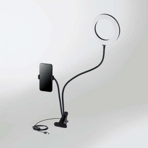エレコム ELECOM LEDリングライト 自撮りライト 3色調光 最大640lm 10段階調整 USB-A給電 動画配信 クリップスタンド付き フレキシブルアーム 16cm DE-L01BK