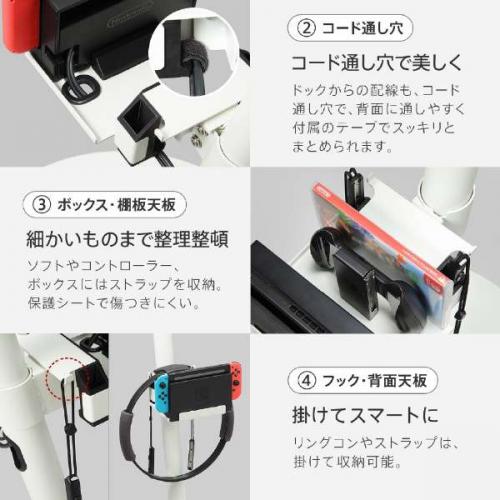 コントローラーやストラップ、ソフト類をまとめて収納できます。(棚板の耐荷重は3kg)