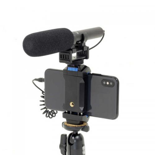 ホルダー上部にアクセサリーシューを装備し、LEDライトやマイクの取り付けに対応。