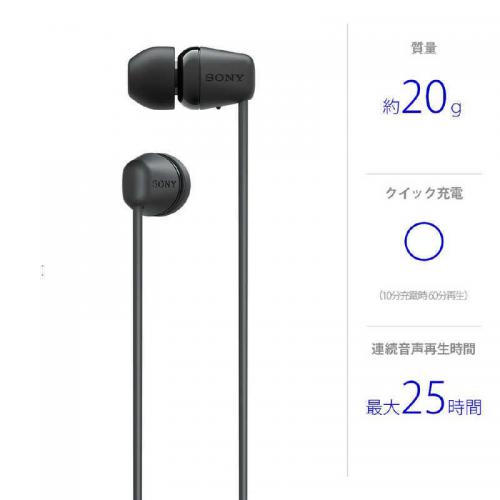 ソニー SONY ブルートゥースイヤホン ブラック リモコン・マイク対応/防滴&ネックバンド/Bluetooth WI-C100-BZ