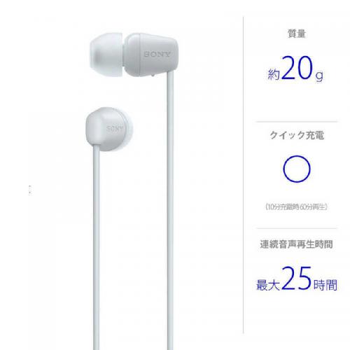 ソニー SONY ブルートゥースイヤホン ホワイト リモコン・マイク対応/防滴&ネックバンド/Bluetooth WI-C100-WZ
