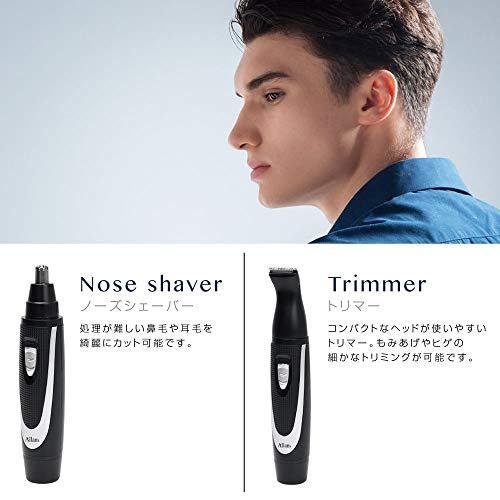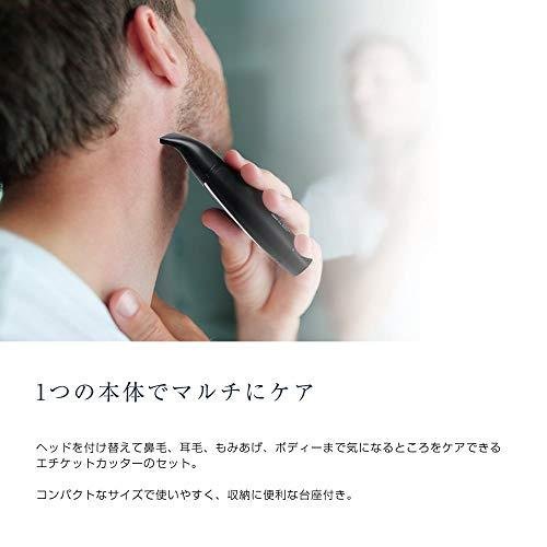 ヘッドを付け替えて鼻毛、耳毛、もみあげ、ボディーまで気になるところをケアできるエチケットカッターのセット。