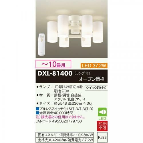 ●型式:DXL-81400 [リモコン付き /10畳 /電球色](DXL81400)