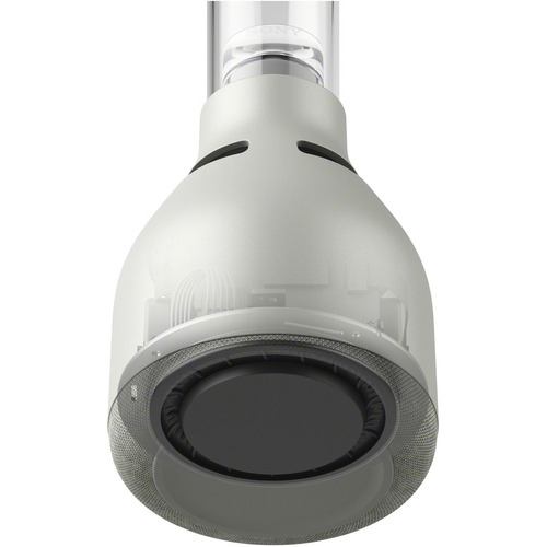 透明な有機ガラス管は高域を再生するトゥイーターになっており、中央に配置されているウーファーからは中低域を再生します。スピーカー下部のパッシブラジエーターが低域を増強し、豊かな低音を実現。クラシックやジャズはもちろん、ボーカルの入った曲など幅広いジャンルの曲をスピーカー全体から広がる高音質で楽しめます。