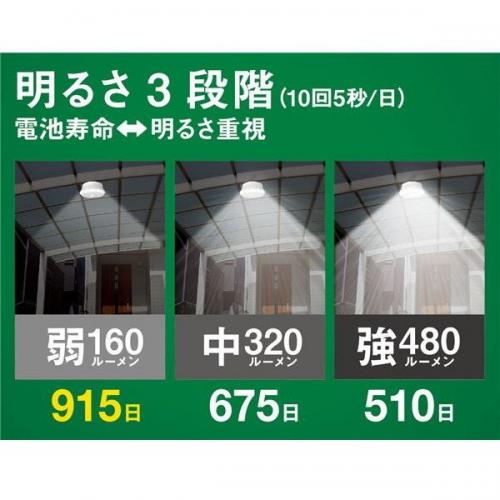 * 電池寿命:弱/160ルーメン:915日、中/320ルーメン:675日、強/480ルーメン:510日