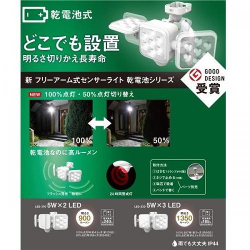 ムサシ フリーアーム式 LED乾電池センサーライト 5W×2灯 LED-270