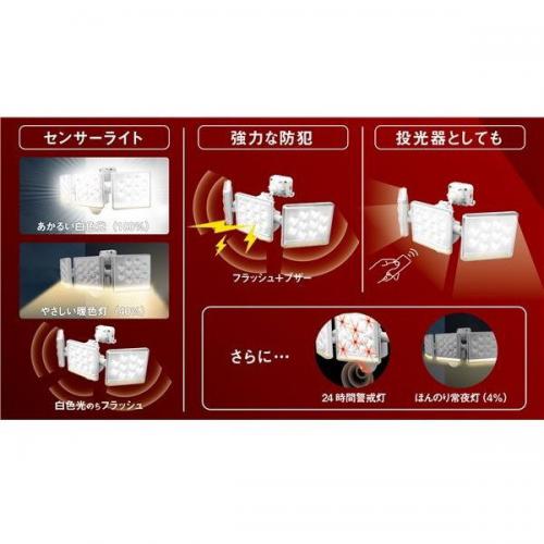 ・センサー感度:弱・中・強、点灯時間(10秒・30秒・5分・10秒フラッシュ)、センサー反応照度(昼夜・夕夜・夜)、ほんのり常夜灯モード(100%点灯に対して4%)