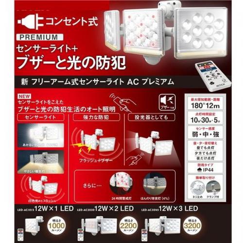 ムサシ RITEX フリーアーム式 プレミアム LEDセンサーライト 12W×3灯 LED-AC3045