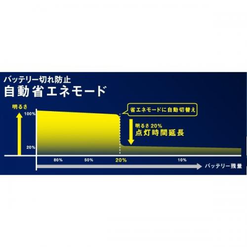 バッテリー残量20%以下になると自動で20%の明るさで点灯します。