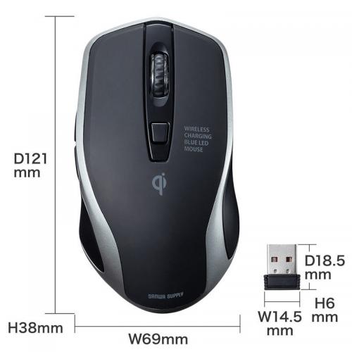 サンワサプライ SANWA SUPPLY ワイヤレスマウス 充電式 バッテリーフリー 電池交換不要 ブルーLED Qi対応 置くだけ充電 ブラック MA-WBL157BK
