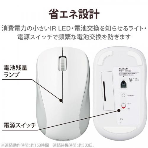 エレコム ELECOM ワイヤレスマウス Bluetooth IR LED 3ボタン Mサイズ 抗菌 ホワイト MBY11BRKWH