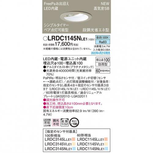 パナソニック Panasonic LEDダウンライト 白熱電球 60形 FreePaお出迎え 昼白色 LRDC1145NLE1