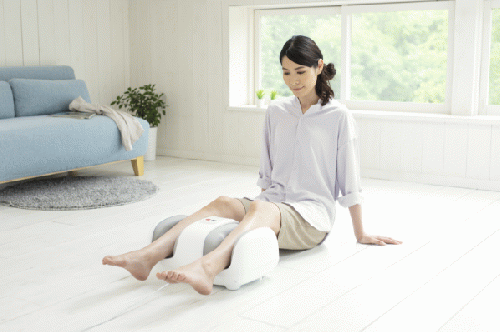 もみボードがふくらはぎをしぼりもみながら、