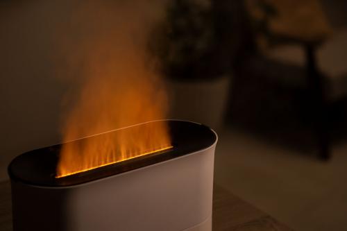 お部屋の照明を落とし電源を入れれば、ミストのもくもく感にLEDライトが当たることで、メラメラ燃え上がる炎でムーディな空間を演出します。