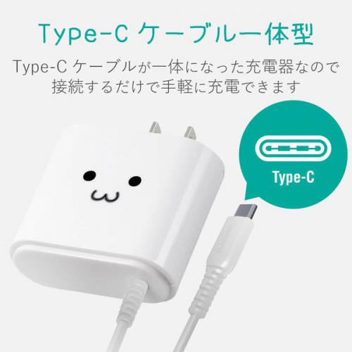 エレコム ELECOM AC充電器 Type-Cケーブル一体型 2.4A出力 1.5m ホワイトフェイス MPA-ACC01WF