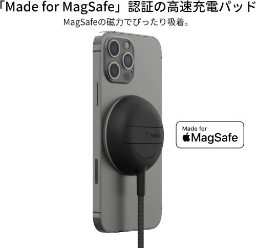BELKIN ワイヤレス充電パッド急速充電 キックスタンド付き AC電源アダプター付属 ブラック WIA004DQBK