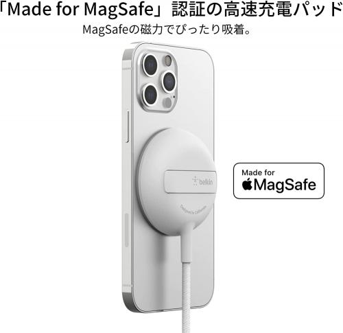 BELKIN ワイヤレス充電パッド急速充電 キックスタンド付き AC電源アダプター付属 ホワイト WIA004DQWH