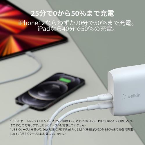 BELKIN USB充電器 40W デュアルUSB-C(20W x 2) PD対応 ホワイト WCB006DQWHJP
