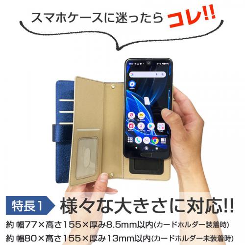 エアージェイ air-J スマホケース 手帳型 マルチケース アンドロイド ブックタイプカバー シャイニーネイビー ACLAM4SHYNV