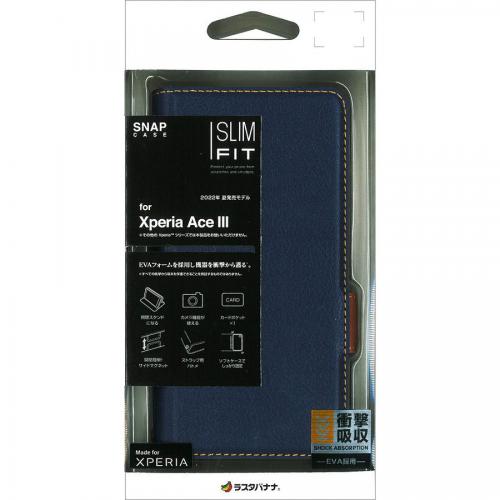 ラスタバナナ Xperia Ace III(SO-53C/ SOG08)用 薄型手帳ケース サイドマグネット ネイビー×ブラウン 6979XPA3BO