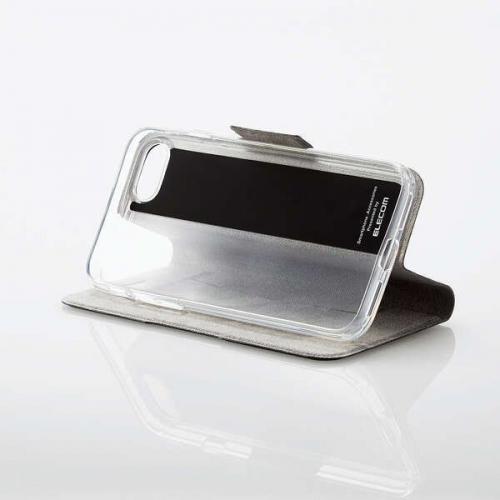 エレコム ELECOM iPhone SE 第3世代 / 第2世代対応 ソフトレザーケース 手帳型 UltraSlim 薄型 磁石付き クリアケース 4.7インチ カーボン調 ブラック PM-A22SPLFUCB