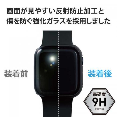 エレコム ELECOM Apple Watch series7 45mm 用 フルカバーケース プレミアムガラス 反射防止 アップルウォッチ7 ブラック AW-21AFCGMBK
