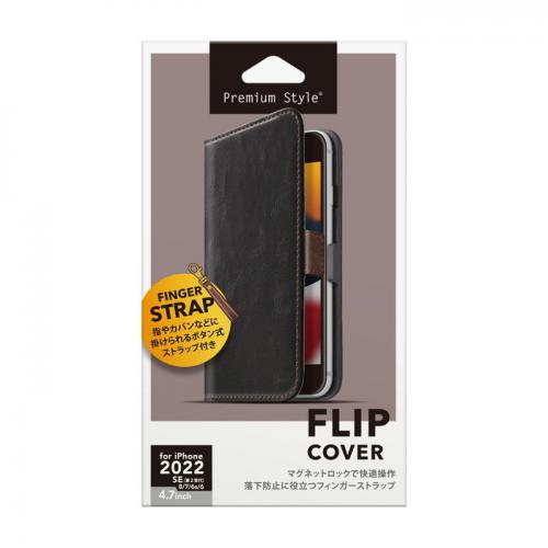 PGA iPhone SE 第3/第2世代/8/7/6s/6 フリップカバー PUレザー ブラック PG22MFP02BK