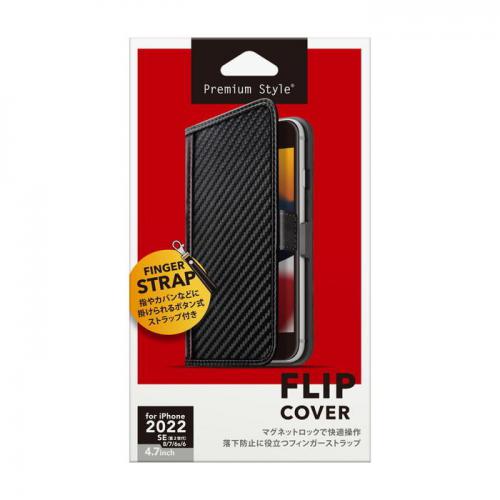 PGA iPhone SE 第3/第2世代/8/7/6s/6 フリップカバー PUレザー カーボン調ブラック PG22MFP04BK